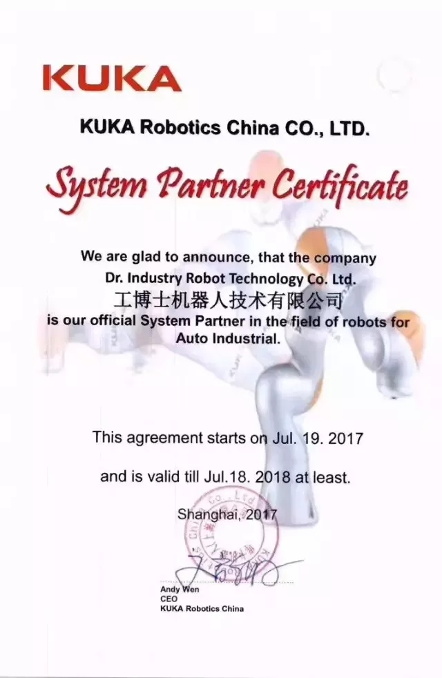工博士機(jī)器人技術(shù)有限公司與庫(kù)卡機(jī)器人就雙方在機(jī)器人焊接工作站及機(jī)器人系統(tǒng)集成方面達(dá)成緊密合作協(xié)議,充分利用雙邊優(yōu)勢(shì),為客戶(hù)降低自動(dòng)化改造成本和技術(shù)門(mén)檻,為工廠(chǎng)提供一站式智能解決方案!